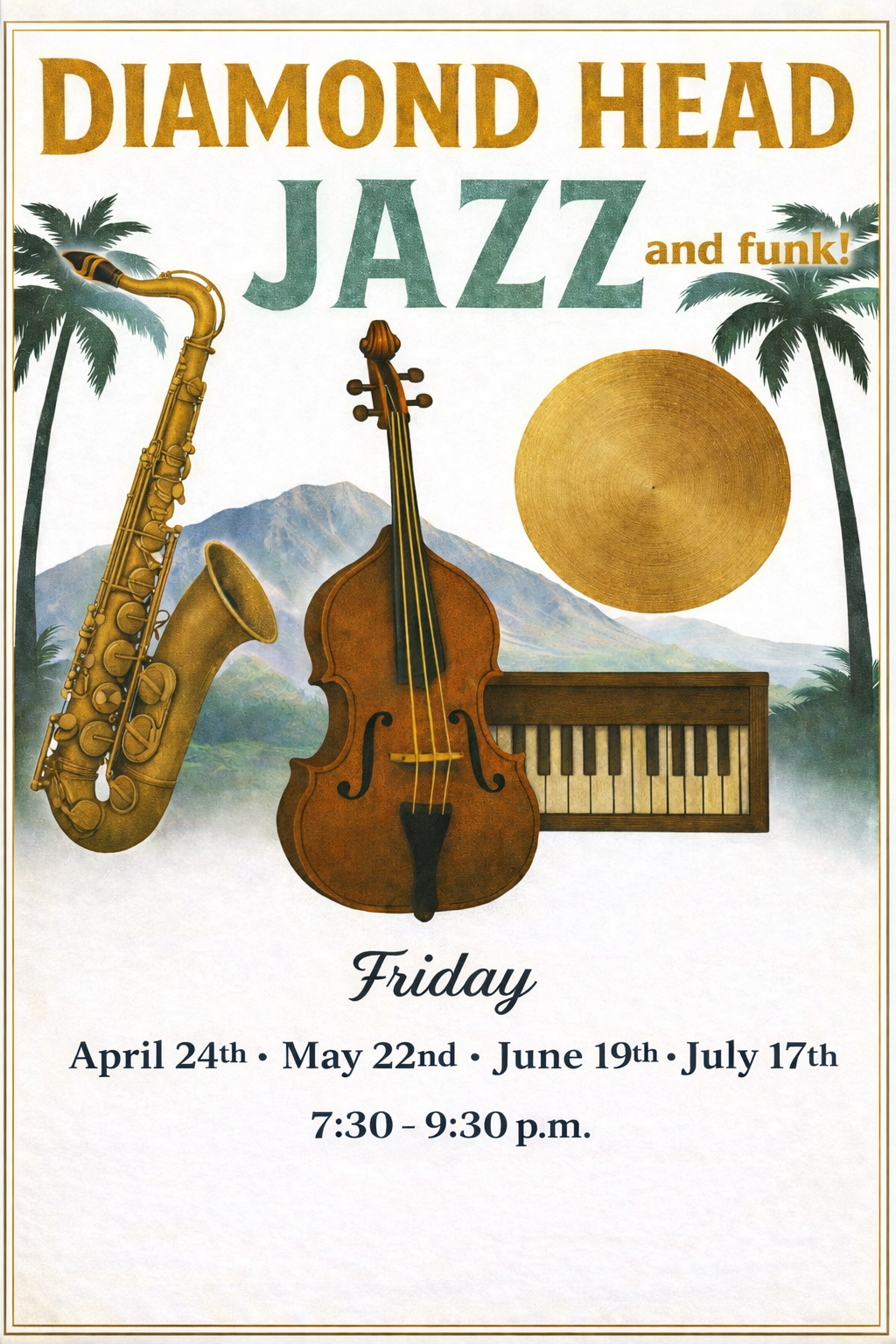 Back to All Events Live Music: Diamond Head Jazz & Funk Friday, June 19, 2026 7:30 PM 9:30 PM Google Calendar ICS